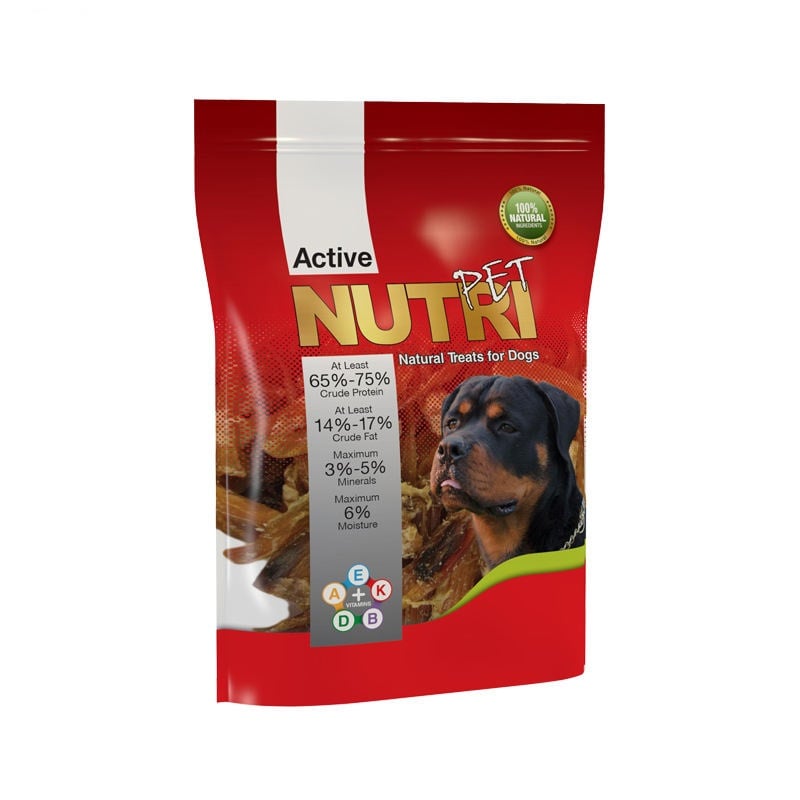 تشویقی سگ نوتری پت مدل ژلاتین وزن 50 گرم، از ژلاتین گردن گاو تهیه و دارای پروتئین بالایی است. همچنین سرشار از ویتامینها،املاح و مواد معدنی مورد نیاز برای سگ ها می باشد که به تقویت غضروف و مفاصل سگ و تمیز کردن جرم دندان و تقویت عضلات فک سگ کمک می کند.این محصول یک تشویقی برای کلیه نژادها است .